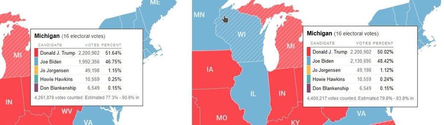 Два скриншота этого вброса в Мичигане, до и после: